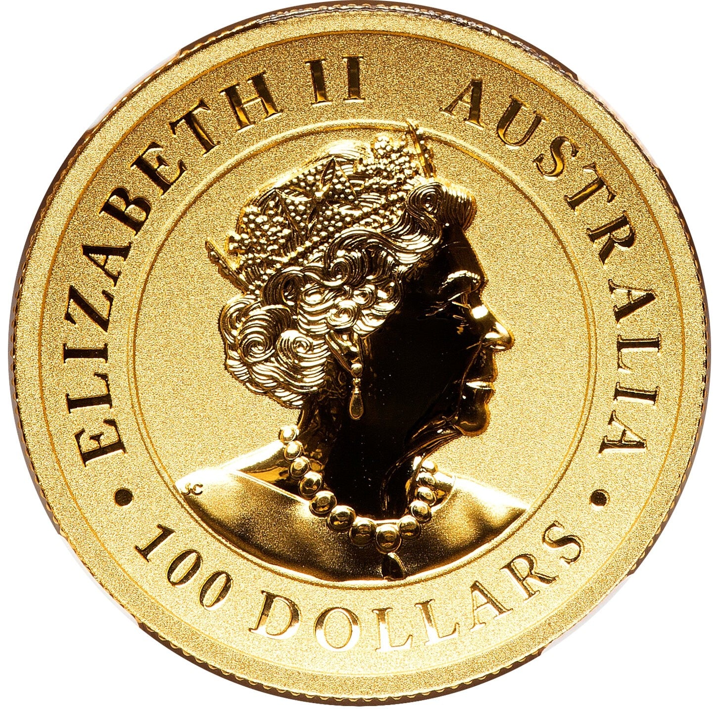 This 2021-P Elizabeth II $100 Wedge-Tailed Eagle is a breathtaking 1 oz gold Enhanced Reverse Proof, struck in high relief by the prestigious Perth Mint. Certified a flawless PR70 by NGC, this coin also bears the exclusive First Day of Issue (FDI) designation and features a label hand-signed by John M. Mercanti, the legendary 12th Chief Engraver of the U.S. Mint, who also designed the coin’s majestic reverse.